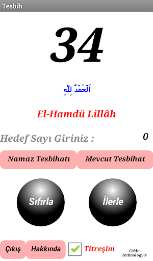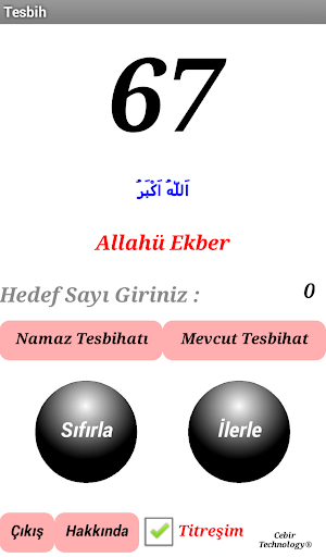 Tesbih uygulaması Android cihazlar için tasarlanmıştır. Tesbih programı; sade,göz yormayan, tek sayfada kullanılabilen ve kolay anlaşılır olması esas alınarak sizlere sunulmuştur. Tesbih uygulamamız ücretsiz ve reklamsızdır. Uygulamamızı tercih ettiğiniz için teşekkür ederiz.