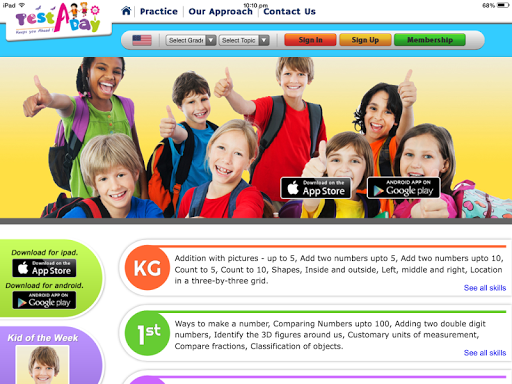 “Test A Day” is dedicated to providing innovative and exciting ways for children, to learn their Math Skills easily and effectively. Test A Day combines sound learning principles along with proprietary technology to offer a rich resource of interactive practice tests for school students.
