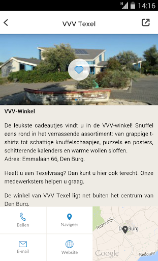 • Bel, mail en navigeer direct naar locaties en websites vanuit de Texel WadsApp