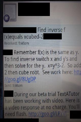 Simply submit your math problems via the app by typing in a question or using your smartphone's camera. Within minutes our tutors will respond with explanations, worked out solutions, or even video right to your phone. If you don't understand simply reply back to the tutor and they can give additional help!