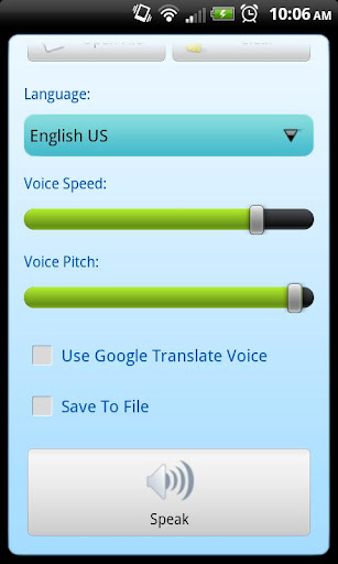 Text To Speech can be used for different purposes, from using it to read a eBook text file, to boasting about how your android phone can talk to your friends with iPhone to helping your child learn to speak new words. With simple user interface, almost anyone will be able to use this application. So enjoy the app and don't forget to comment/rate it. :)