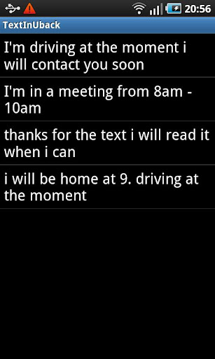 This App has been created for people that cannot text at a specific time. i.e You maybe going for a long drive and not want to risk having a serious acciedent.