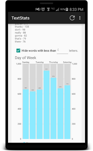 - Statistics on most used words, average words per message, average characters per word