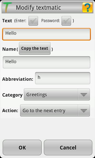 To type these texts simply select them from the keyboard itself or write the abbreviation that you are associated. With Textmatic you avoid writing the texts you use every day, you decide what store and how to organize text.