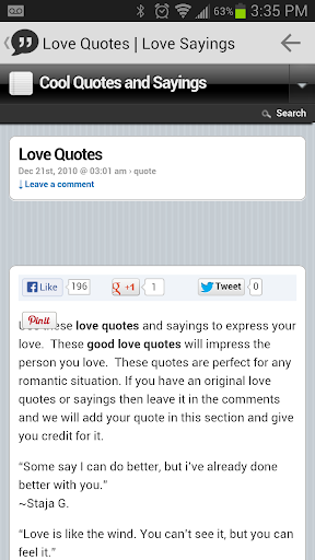 - Easy to search for quotes with simple keywords such as "love, life, anger, etc..."