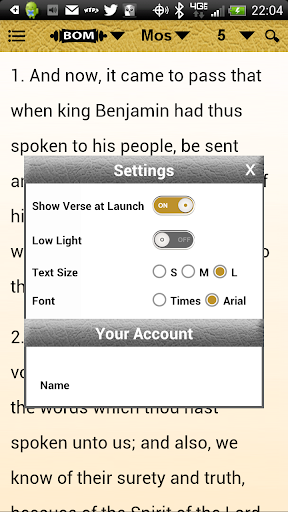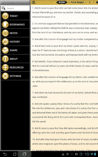 • Browse: browse through the scriptures by book and chapter; drop down menus make it easy to find any book and chapter easily