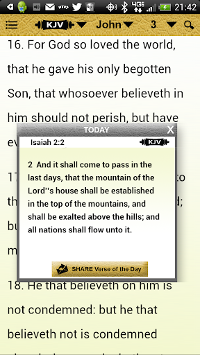 • Verse of the Day: each day a new verse is given and is easy to share via Facebook, Twitter, text message and email