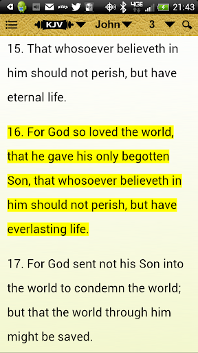 • Highlight: highlight your favorite verses, either individual or several together