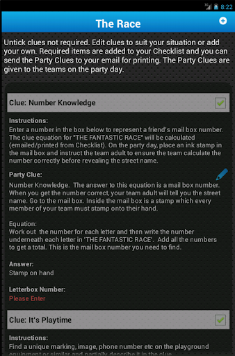 - PARTY PREP will guide you with step by step instructions for you to set up The Fantastic Race party tailored to your individual needs.