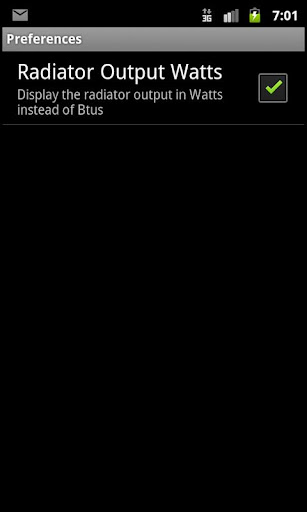 Radiator output can be displayed in kilowatts or BTUs by selecting the relevant preferences menu option on the main screen.