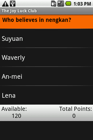 Shmoop’s analysis of The Joy Luck Club is everything you need to better understand the book for your upcoming class, date, whatever. Shmoop Guides are written by top PhD students who provide ocean-deep analysis while showing your brain a good time. Test your wits with the built-in Quiz-o-Rama game.