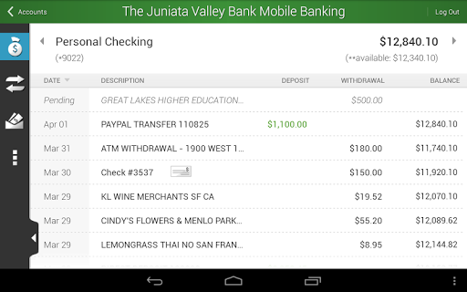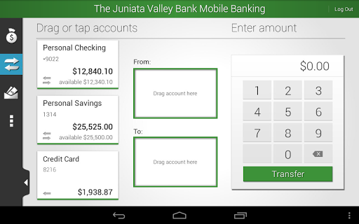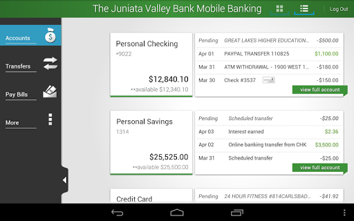 Juniata Valley Bank’s Mobile App makes it easy for you to bank on the go. Do your banking right from your Android! You can manage your accounts, pay bills, find ATMs and more!