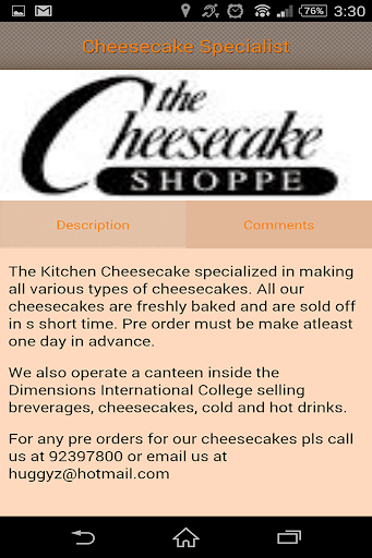 Through the The Kitchen Cheesecake mobile app, user can interact with us more effectively and will be updated regarding our stall at anytime, anywhere.