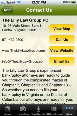 Whether you are looking to hire The Lilly Law Group, PC to represent you for a bankruptcy or just learn about bankruptcy in Virginia, using this FREE convenient app will help you do both.