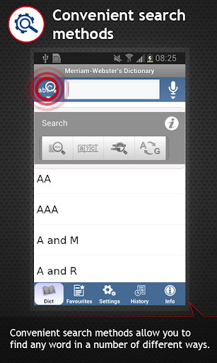 • Search History feature shows the last 100 words looked up.