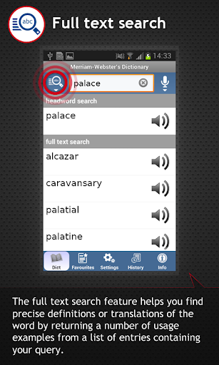 • Full text search feature allows you to look up words more efficiently throughout the whole dictionary content, including headwords and usage examples.