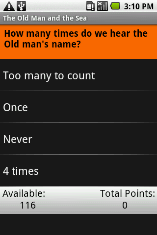 Shmoop’s analysis of The Old Man and the Sea is everything you need to better understand the book for your upcoming class, date, whatever. Shmoop Guides are written by top PhD students who provide ocean-deep analysis while showing your brain a good time. Test your wits with the built-in Quiz-o-Rama game.