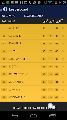 The latest and most relevant updates throughout the Championship will be presented through our dynamic Timeline feature, including news, social media highlights, photos and live updates straight from the course so you don’t miss a shot.