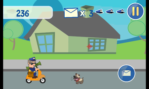 Be a postman and try to deliver as many mails as you can! Beware with furious dogs,"kamikaze" and "bomber" pigeons! Take the motorcycle to increase your speed and to use the launcher mail gun! The ultimate word in fast delivery!