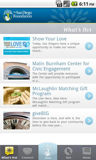With The San Diego Foundation iPhone app, you can do all of the following and much more! Here are a few of the most prominent features: