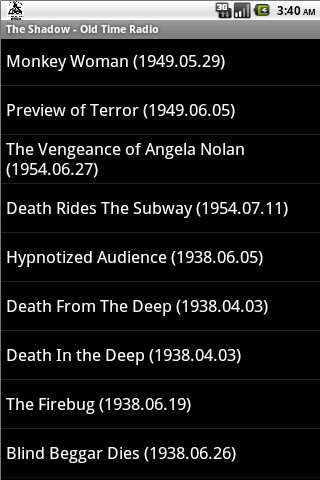 The "The Shadow OTR" App will not use up your data plan's minutes by downloading the audio files (mp3) over and over. You will download load all the data when you install the App. The "The Shadow OTR" App works even in airplane mode and in places without Wi-Fi or phone network access! So you can listen to your audio book anywhere anytime! The "The Shadow OTR" App automatically pauses when you make or receive a phone call and automatically resumes after the call ends. The "The Shadow OTR" App will continue to play until you exit the App or pause the reading so it is perfect for listen in bed, at the gym, or while driving into work.