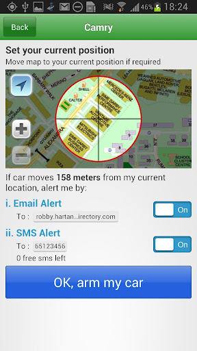 Via SMS or email when vehicle is found near certain hotspots