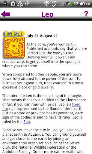 This app speaks for its self a very simple Horoscope app. Get you horoscope everyday easy. Caculate to find your zodiac sign. Find out if you and your mate are compatible.