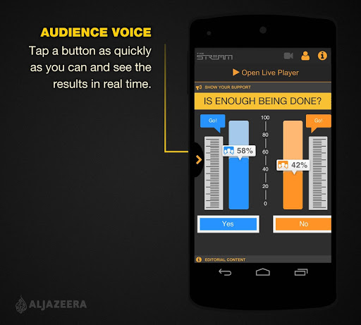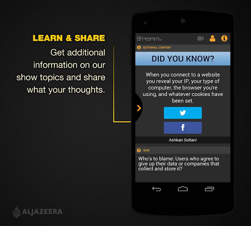 While you are watching The Stream, you will be able to use this app to engage with our hosts, producers, and TV audience in real-time. When combined with the show, features of this app will include the ability to: