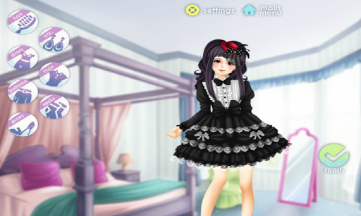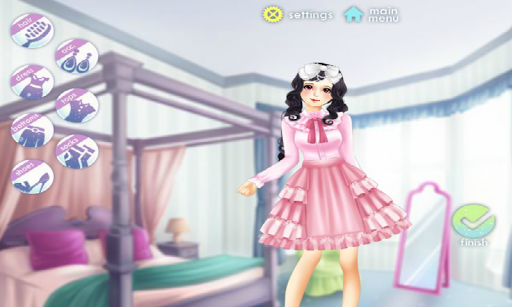 Can you help her by picking out a cute and suitable outfit and hairstyle for her?