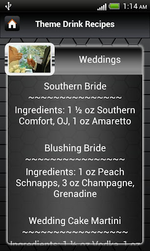 Planning a themed cocktail party and need drink recipes to impress your guests? Check out this app with a comprehensive list of drink recipes for all types of occasions including Weddings, Halloween, Christmas, Bachelorette Parties and even Mocktails (non-alcoholic) for the Sweet 16 or High School Graduation Party. For more fun drink recipes, visit www.jcbartending.info
