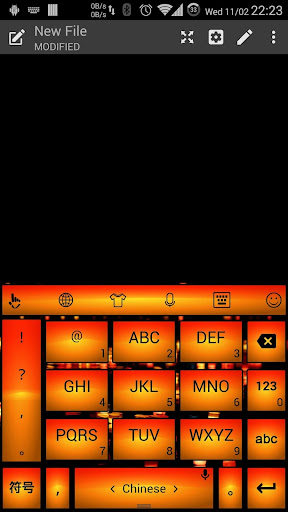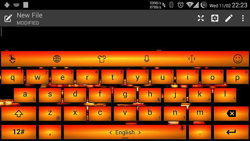 Gives a dark and gloss look to your TouchPal Keyboard with orange red keys and black background with led neon orange lights.