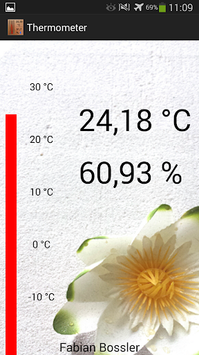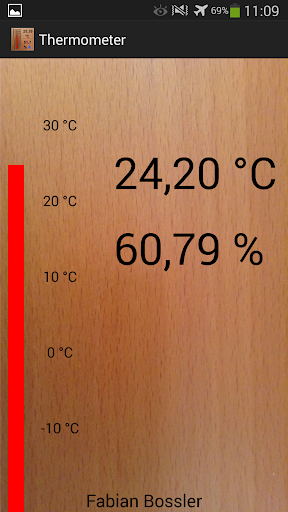 This App measures the temperature (in °C) and humidity with sensors in the device.