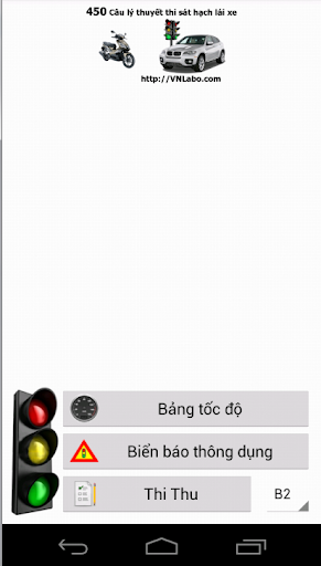 Thi bằng lái là ứng dụng ôn thi lý thuyết lái xe các hạng A1, A2, A3, A4, B1, B2, C, D, E, F theo bộ đề mới 450 câu được sử dụng từ năm 2013.