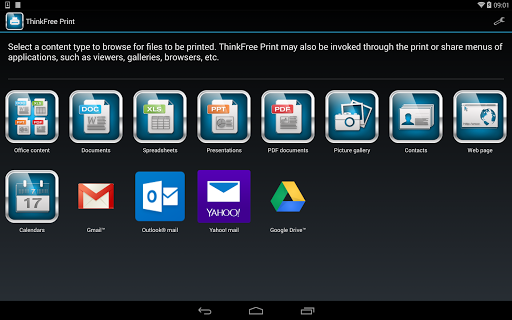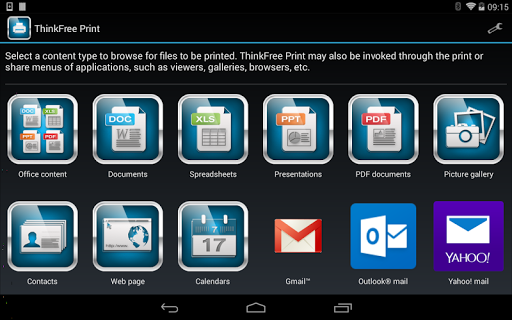 ThinkFree Print is the leading mobile print application that enables Android tablets and smartphones to wirelessly print documents, spreadsheets, presentations, PDFs, photos and much more.