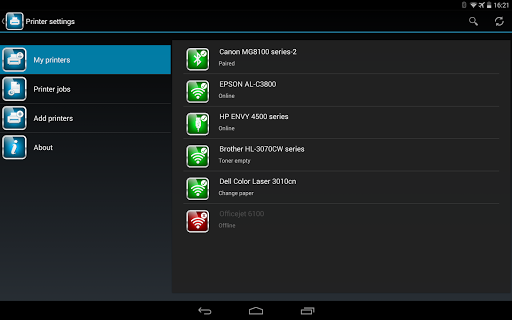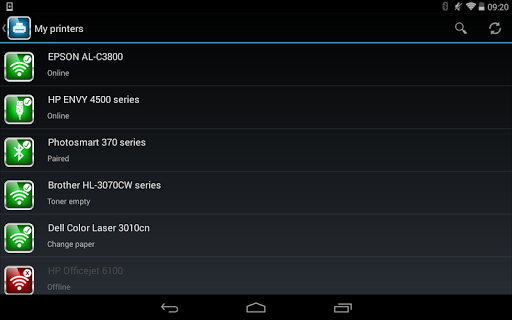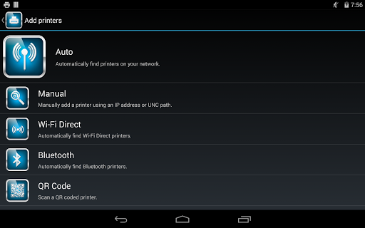 Connect directly to your Wi-Fi printer or networked printers via a Wi-Fi access point. Supports Wi-Fi Direct in Android 4.4 and above. Print over USB cable and to some Bluetooth printers. Greater than 8,000 printer types supported for direct printing. Automatically discover your printers and save as favourites to the My Printers list. Requires no driver installation or network configuration.