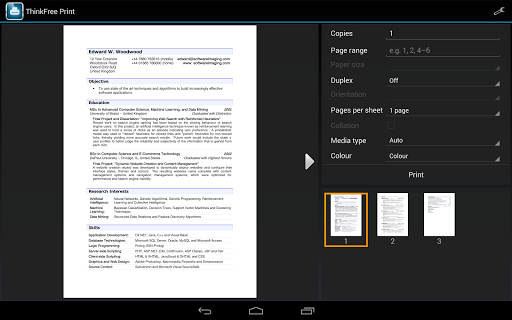 Full control of your print job settings including paper size, page orientation, number of copies, page range, one- or two-sided printing (duplex mode), printout mode (color or monochrome) and more. Preview documents before printing with thumbnail and full page views. Monitor progress of your print jobs.