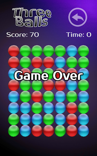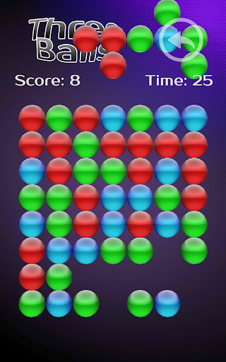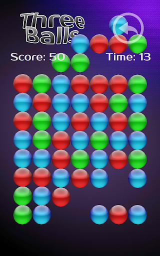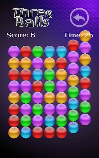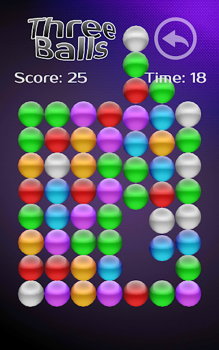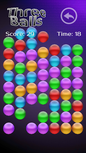 Find at least 3 balls in the same color placed next to each other, before the time runs out.