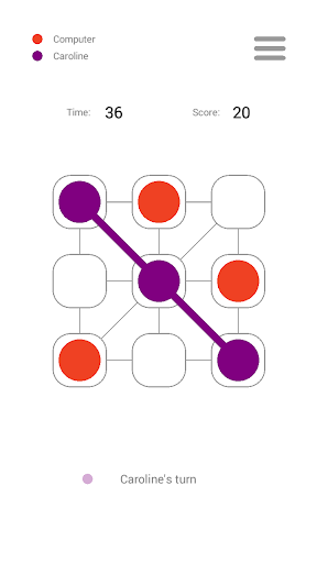 + MOVES: Play against Computer with a restriction 30 moves. Use each move wisely to earn as much points as possible. In this mode, you earn 10 points for each align and a 5 point deduction for each computer align.