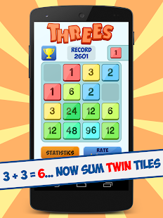 After the worldwide success of math game "2048", here's the new challenge for you: Threes Free! Sum only twin tiles with the same color and number.