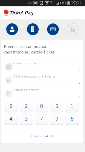 2. Através da opção “Ticket Pay” no menu, registre o número do seu Ticket Restaurante® e uma senha que será usada para transações mobile.