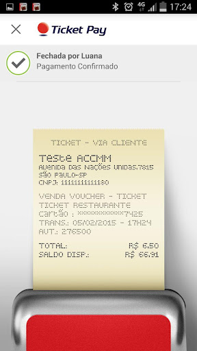 6. Pronto! Você receberá o comprovante de pagamento através do aplicativo Ticket Pay.