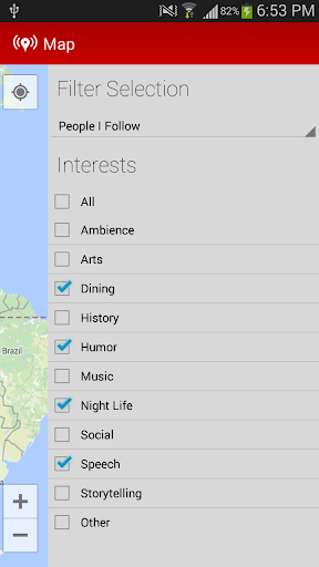 - Map allows uninhibited exploration of the world around you, where you can apply filters to suit your interests.