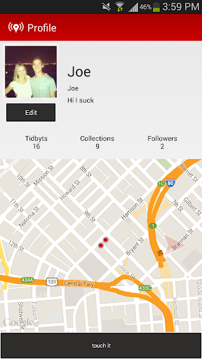 - Profiles allow users to give a description of themselves, and easily access all of their own tidbyts