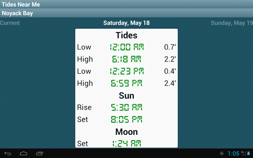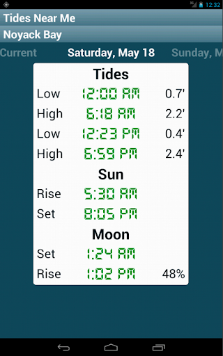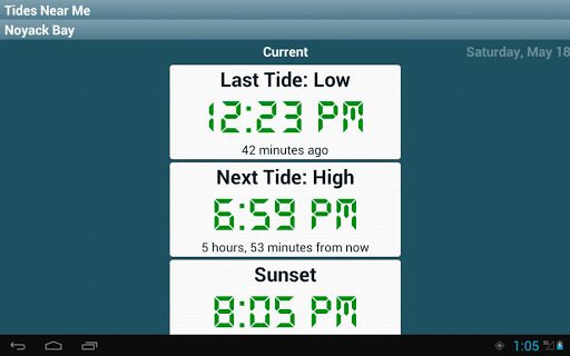 Tides Near Me focuses on nearby tide stations and current tidal conditions. Quickly learn the time of the last and next tide, as well as when the sun and moon will rise or set. Fully automated tide tables, charts, and predictions.