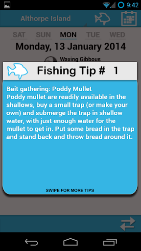 *In-built calendar to view any dates tides up until December 1st 2015 (Plan trips in advance)