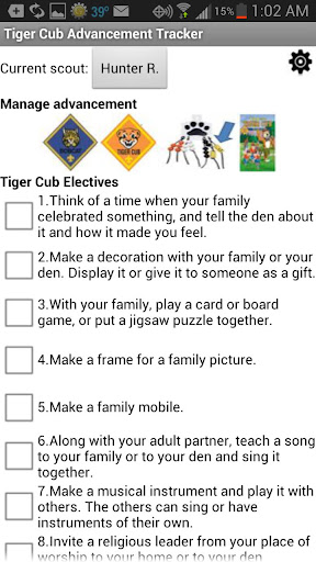 While all good ideas that may or may not appear in future versions, the goal of this app is to allow simple and reliable tracking of multiple scouts for their tiger cub badge.