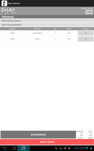 Allows scanning of Tijar Fashion product, order creation and inventory reports.