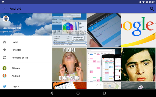 Timage Browser lets you browse through all images in your twitter timeline, Lists, and Favourites. Search for images by keywords, or hashtag.