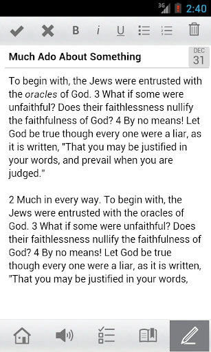 * Digital Bible: Enter in the passage you want or use quick keys to go directly to the passage you desire to read.