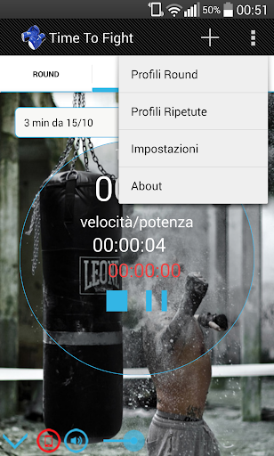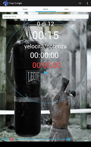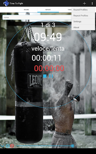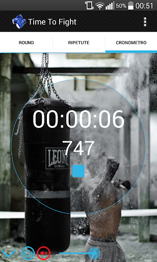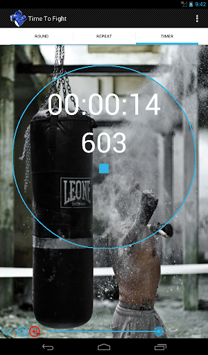 Thought the bar on the bottom, you have the access to the controls to adjust, to activate or to stop the media player. The audio, used by Time To Fight, is the same of the music player, so your music will continue during the workout and you can change it without to stop the app.